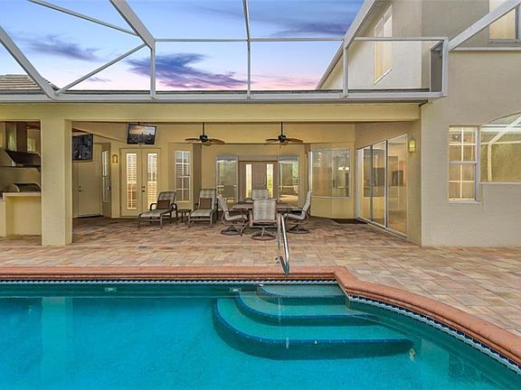 Welcome to the Sanctuary at River Clubl Come see this impressive updated home that is positioned on a sheltered cul-de-sac 0.33 acre lot where feelings of stress and a fast-paced workday fades away as the benefits of peace and privacy take over. Simply, a great setting where dogs can play in the wooded treed backyard without fear or worry or an ideal setting for the gardener. With 4 bedrooms, den, a huge upstairs bonus/media room, and a 3 car extended garage this home has everything! Enjoy countless hours relaxing on the extended paver lanai with in-ground saltwater heated pool or outdoor entertaining in the covered logia, with wood ceiling, summer kitchen and dedicated pool bath! This Todd Johnston custom home is well appointed & recently updated with new carpets, stainless steel appliances, fresh paint and more. The welcoming foyer flows into the formal living room, with fireplace, and to the formal dining room with no carpeting. The kitchen is a dream come true with stainless steel appliances, including a 5 burner natural gas cook-top, white cabinetry, center island, granite counter-tops and opens to the family room with wall of sliding glass doors. The impressive master suite features a huge walk-in closet with custom built-ins and a master bath with whirlpool tub and separate shower. The first level den offers custom built-ins and French doors. Newer two zoned HVAC systems, crown moldings, tankless water heater, huge laundry room, generator and more features. Don't forget the low HOA fees and no CDD