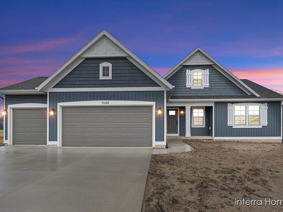 Open Houses Weekly. New Construction and Now Complete!. Interra Homes presents the ''Enclave'' ranch plan in the popular Hidden Shores West neighborhood of Allendale. This ranch home boasts almost 1600 square feet on the main floor with cathedral ceilings and an open Living Room, Eating Area and Kitchen with Center Isle. Stainless steel kitchen appliances included. The main floor also features the Primary Suite with walk-in closet and private bath. Two more bedrooms, a mudroom, laundry and an additional full bath grace the main floor. Downstairs is a large unfinished daylight basement with rough-in plumbing for future bath.