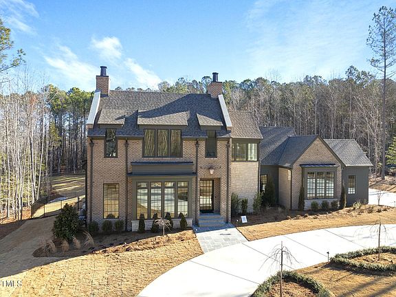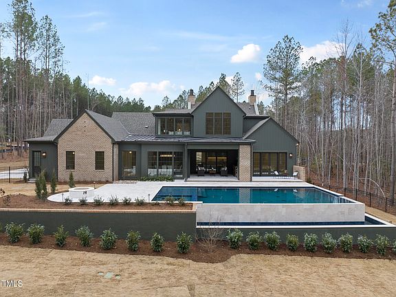 Stunning Custom Residence by Midtown Custom Homes! Located in North Raleigh's Exclusive Shinleaf Estates! Nestled against the serene wooded buffers surrounding Falls Lake. This home blends Luxury and nature seamlessly. Upon entering, you're greeted by an inviting foyer that leads to a spacious Family Rm with a bespoke bar featuring walnut lining to continue the natural wood accents throughout this space. A gourmet kitchen w/scullery boasts a Large island w/custom cabinetry, perfect for culinary creations and casual gatherings. Expansive Design includes 5 BR's each w/exquisite baths, master suite offering a private sanctuary for comfort. Upstairs, discover a versatile loft & Rec Rm ideal for entertaining or relaxing. The magic continues with a covered porch overlooking a raised pristine pool w/infinity edge waterfall creating an idyllic setting for alfresco dining or serene morning coffee. This isn't just a residence; it's a Lifestyle! Embrace the harmony of Luxury Living!