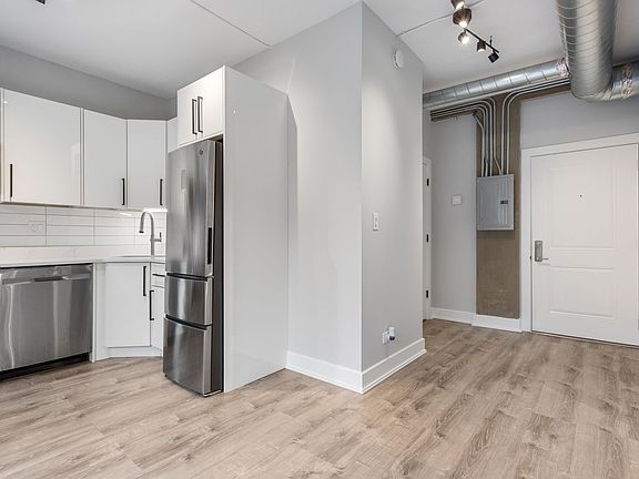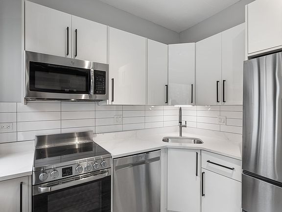 Modern White Kitchen Cabinets Quartz Countertops with Deep Undermount Sink Stainless Steel Appliances with Dishwasher Open Concept Kitchen/Living Room Exposed Ductwork Central Air AC All-In-One In Unit Laundry XFinity Smart Home Keyless Entry, Temperature Control, Light Dimmers Sleek Bathroom with LED Bluetooth Speaker Mirror Designer Plank Flooring Xfinity Internet & WIFI Included Water Included Pets Welcome (No Pet Rent)