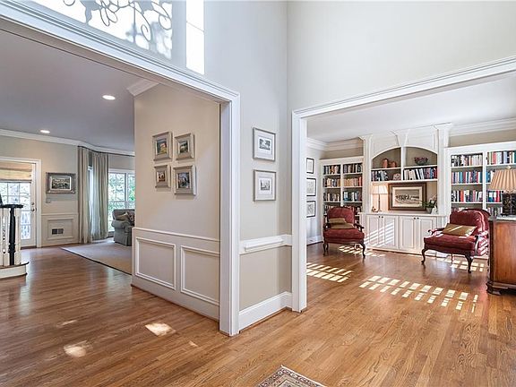 Beautiful Classic Home in a Private Setting Located in popular Spalding Lake, move-in ready! Beautiful architectural details, moldings, high ceilings, hardwood floors. two story and wide foyer opens to separate living room/study with built-ins and spacious dining room. Renovated chef's kitchen with custom stained cabinetry, granite counter tops, stainless steel appliances with gas cooktop, built in wine cooler tile backsplash and separate breakfast area . Walk out the French doors to a huge deck overlooking large private backyard perfect for entertaining. Oversized master bedroom with sitting room, trey ceiling and walk-in closets. Updated bath with large shower, soaking tub and double vanities. Three Large additional bedrooms. Two share a Jack and Jill Bath and the third with the hall bath. Large family/rec room with a pool table on the terrace level. Custom laundry room with a sink and built-in cabinets and tile floor. Located off the Kitchen. Then to top it off we have a community including Swim/Tennis/Lake and Club House, and Neighborhood!