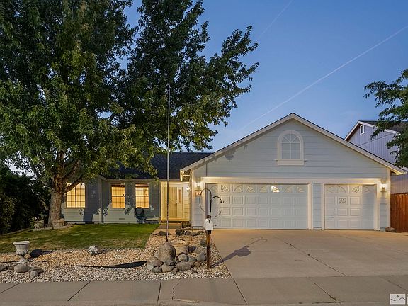 Welcome home! Single level home features a comfortable floorplan with an efficient kitchen that opens to the dining area, perfect for entertaining! The spacious primary suite is the ideal retreat for relaxation at the end of a long day. The private backyard is bordered by mature trees and includes a large patio, a great space for summer BBQ's or a cold drink with friends., The oversized three car garage provides ample space for vehicles, a personal workshop or a variety recreational equipment (which you'll need with all of the activities easy to access in our area, such as hiking, mountain biking, exploring with ATV's or fishing in local lakes). Great location with easy freeway access and a short drive to local events in downtown Reno and year-round recreation at Lake Tahoe. Some rooms have been virtually staged for visual representation. Call today for a personal tour!
