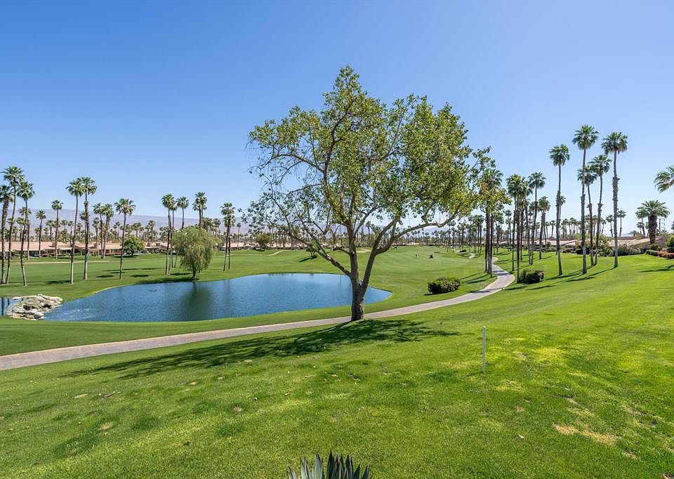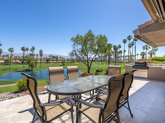 Perched atop the fairway, this gracious Sycamore plan offers panoramic vistas of the lush golf course, majestic mountains, and serene lake. Vaulted ceilings complement the spacious living area, accentuating the cozy fireplace's charm. The primary suit with its remodeled bathroom provides a soothing retreat, while two guest bedrooms, including a versatile den/bedroom, offer ample space for guests. Boasting lovely remodeled bathrooms, newer low E-340 windows and patio doors, along with a newer a/c. Step outside to the tiled patio area and a very nice built-in gas BBQ with island, perfect for entertaining against the backdrop of breathtaking views. Nestled in an active country club setting, you can indulge in pickleball, tennis, golf, and an array of activities. Do check with the Membership Director for details. Offered furnished per inventory, this is active resort-style living at its finest.
