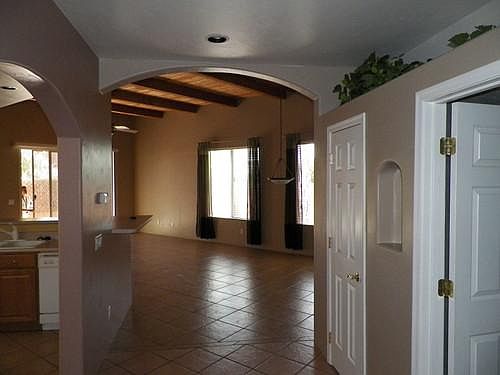 Tucked away in an enclave of 101 Barrio Styled homes is one of the most charming and private subdivisions in Tucson. Built by T J Bednar, this 2 bedroom, 2 bath home with den offers 1617 sq ft of living area, all in a great room setting. 16' rough hewen beam/wood ceiling, large master bedroom with sitting area, guest bedroom, open concept kitchen with eat-in dining, breakfast bar, island and large laundry room with washer and dryer. Ceiling fans in bedrooms, den and great room. Step outside onto the flagstone patio surrounded by blooming Bougainvillea, palm trees, all with space for patio table and chairs. Pantano wash close by, shopping and so much more. Wonderful home for anyone looking for peace and tranquility that Tucson has to offer.