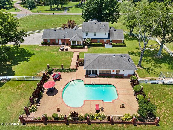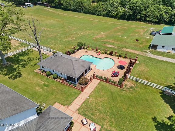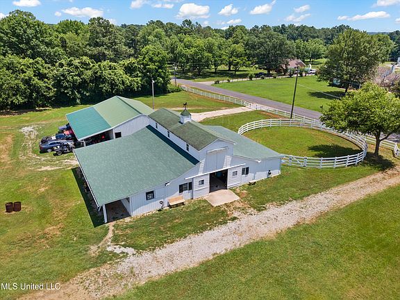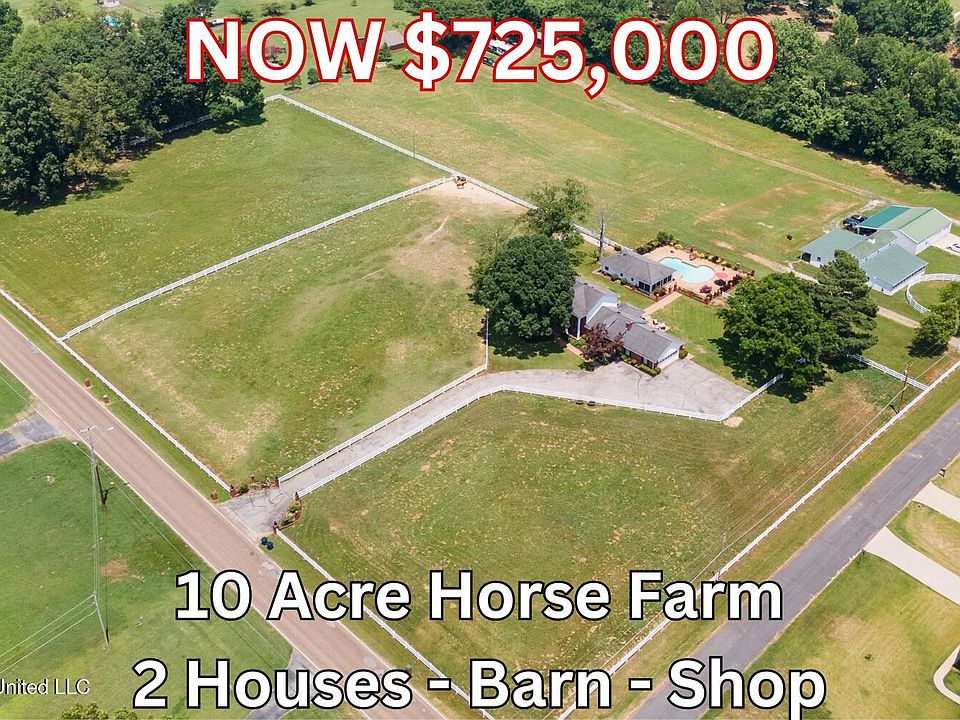 NOW $725,000!!!! Discover this exceptional 10-acre equestrian estate nestled in the heart of Olive Branch, MS, surrounded by other prestigious horse properties. The property is fenced and cross-fenced, ensuring the utmost pasture separation. The main house spans 3100 square feet, offering a harmonious blend of elegance and comfort. It features 4 bedrooms and 3 full baths, including a primary suite and a second bedroom and bath on the main level. Upon entering, you'll find a formal dining room and a formal living room, perfect for a home office. The open concept kitchen and great room create a warm and inviting space for gatherings. The kitchen is a chef's dream with a 5-burner GE Monogram range, a deep sink, a wine refrigerator, and stainless steel appliances. The great room boasts a fabulous fireplace with a live edge wood mantle and a feature wall designed for a TV. Upstairs, there are two spacious bedrooms and a versatile home office or craft room.