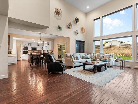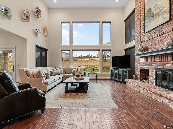 Welcome to your dream home in the prestigious Chenango community! This incredible two-story home sits on a sprawling 2.4-acre lot and is fully equipped for horse lovers. The home welcomes you in with vaulted ceilings, expansive windows featuring custom window treatments, an inviting floorplan and an abundance of natural light throughout. . The gourmet kitchen features a double oven, Viking gas range, and spacious pantry. Connecting seamlessly to a butler's pantry, you’ll enjoy meals with your loved ones in the oversized dining room. Cozy up in the living room by the fireplace or retreat to the family room, which boasts built-ins and a wet bar with mini fridge – the true heart of the home! The main floor is complete with an executive office space and large laundry and mud room. Offering a true sanctuary, the primary suite includes a sitting room with breathtaking mountain views and a luxurious 5-piece bath with rainfall shower and soaking tub. Three additional bedrooms are perfectly placed throughout the upper level; one with an en-suite bath and two sharing a well-appointed jack-and-jill bath. Head downstairs to unwind and play in the basement where you’ll find theatre area with wet bar, game room, an extra bedroom and bathroom, and ample storage. The property is perfectly situated in a quiet cul-de-sac, backs to the bridle trail and is ready for horses! Horse features include a barn with two stalls and a tack room, an arena, and multiple fenced pastures. Don't have a horse? Create a workout barn or poolhouse as this property has plenty of space to build out a pool or sports court. Enjoy the community's 10+ acre park which has a horse arena, gazebo, playground, and tennis/pickleball courts. With access to top-rated Cherry Creek Schools and close proximity to Regis Jesuit High School, this home perfectly blends luxury living with an equestrian lifestyle. Don’t miss this extraordinary opportunity! Ask your agent for floor plans and a Special Features flyer.
