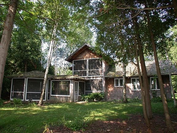 Charming log cabin with amazing lake views. Rustic log cabin located 100 feet from pristine waters of Kangaroo Lake, the largest inland lake in Door County. Main portion of the cabin is hand hewn log. Fireplace, upper and lower screened porches plus screened walkway to the entertainment gazebo. Second level 5 x 31 deck. Views beyond belief plus lovely, warm Kangaroo Lake for water activities. Includes boat dock. Make this your Door County retreat! Offering is part of original tax parcel and tax amount is based on the total 1.09 acre tax parcel.