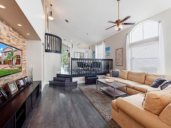 You cannot miss this home in sought after Smith Farms with great schools. Gorgeous details like the stone wall in the living room, the decorative wall in the family room with fireplace feature, family room is also equipped with surround sound and has access to the backyard through the sliding doors, No carpet anywhere, beautiful wood look flooring throughout with new 6'' moldings. Kitchen has stainless Steel appliances, granite, tile back splash,access to the backyard from the sliders in the kitchen make for easy BBQing. You have a full bedroom/Office/Den, down with a full bath down as well. Closet located right outside the room, GE Front load washer dryer, downstairs AC has been replaced in 2009, Beautiful formal dining room for that large family. 3 bedrooms up, master bath floors and