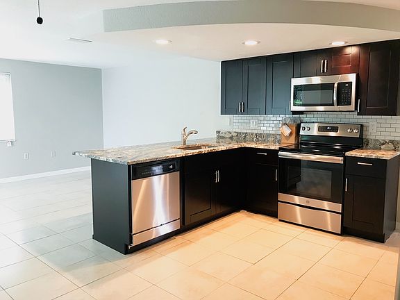 Come see this completely renovated 2 bedroom, 2 bath rental home located in New Port Richey! This house has been redone from top to bottom! The exterior of the home boasts a large front yard. The inside features an upgraded kitchen with beautiful cabinets, decorative countertops, and stainless steel appliances. It also features an eat in breakfast bar as well as space for a more formal dining area. Both bedrooms are spacious featuring wood plank vinyl flooring and plenty of storage space in the closets. Both bathrooms have been redone as well. The main bathroom features a shower/tub combo with decorative upgraded tile accents. The second bathroom features a stand alone shower, also with decorative upgraded tile accents, as well as upgraded tile flooring. Just off the guest bath is access to the 1 car garage. The garage also features fresh paint and redone flooring. A sliding glass door from the main living room leads to the patio area overlooking the backyard. Rent: $1,700.00 (Lawn service included) Security: $1,700.00 Beds: 2 Baths: 2 For more information on this listing please contact: Westcoast Management and Realty, Inc.