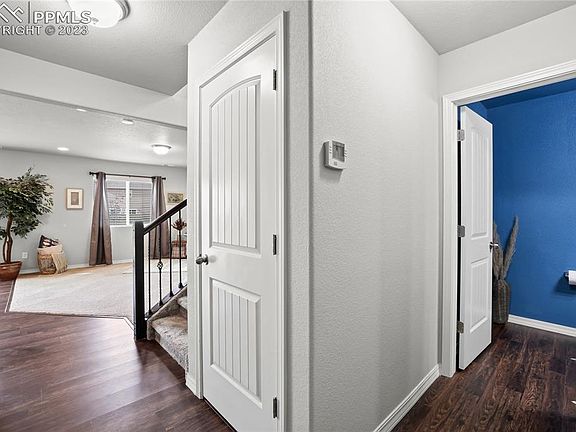BETTER THAN NEW! Pride of ownership really shows in this beautiful 3 bedroom, 3 bath home located in the popular Fountain neighborhood of Ventana. Attractive low maintenance front yard w/expanded front porch to enjoy the Colorado sunshine. Bright open floor plan w/central air, neutral decor & blinds throughout. Gorgeous wood laminate floors extend through the entry, powder bathroom, kitchen, & dining room. French doors off the entry lead into your home office making it convenient to work from home. Powder bathroom w/pedestal sink. The spacious living room overlooks the dining room & kitchen making it a great area to entertain. The dining room has a modern light fixture & a slider to the backyard patio. The island kitchen features a counter bar, walk-in pantry, & white shaker style cabinets w/quartz countertops. Appliances include a smooth top range oven, built-in microwave, dishwasher, & Smart Home French door refrigerator. Water softener w/hookup for reverse osmosis water filtration system. Iron stair rails lead to a spacious loft w/wall of closets for extra storage. This flex area is ideal for a family room, study/den, gym, or playroom. Double doors lead into the owner’s suite that offers MTN views, a lighted ceiling fan, huge walk-in closet, & custom barn door into a luxurious bathroom that provides a dual sink vanity & tiled tub/shower. Convenient upper-level laundry room located outside the primary bedroom. 2 more bedrooms w/lighted ceiling fans & walk-in closets share a hall bathroom that includes an extended vanity & tiled tub/shower. Finished 2-car attached garage w/door opener. The low maintenance, fenced backyard enjoys Pikes Peak views, auto sprinklers, a fenced area for your fur baby, & patio for outdoor relaxation. This awesome neighborhood offers a community center w/gym, outdoor pool/hot tub, a playground, & neighborhood walking trails to get your daily exercise. Close to shopping, dining, & entertainment. Easy access to I-25 & Fort Carson.