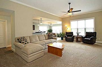 Almost new but better! Includes blinds,landscaping & more. Open floor plan ranch with ex-lg patio. Huge great room with high ceilings and crown molding. 1st flr laundry, stainless & granite kitchen with tray ceiling and split bedrooms. Large 3/4 basement ready to be finished. Designer colors are move-in ready! Taxes are based on lot only.