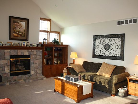 Wow! This spectacular home was built in 2005 and sits on 2 peaceful country acres. The stylish well maintained home includes 3 large bedrooms, 2 full baths, 2 half baths, dining room with built in hutch, sizable family room with a stone fireplace surrounded by lovely hickory built-ins. This kitchen is the perfect center of the home with an ample amount of custom hickory cabinets, stainless steel appliances, a huge island and a built in desk. Other notable features of this stunning home include a huge finished basement with bar and surround sound, bonus room above the garage, geothermal heating, and 9 foot ceilings on the main level. Porches on the front of the home as well as on the back of the home are perfect for enjoying beautiful sunrises and sunsets. You really don't want to miss out on this great home! Schedule your private tour today.