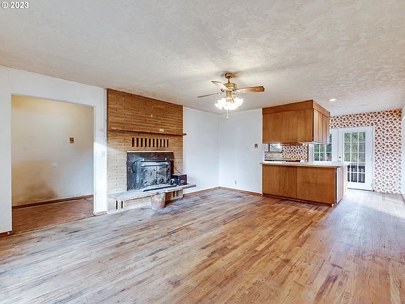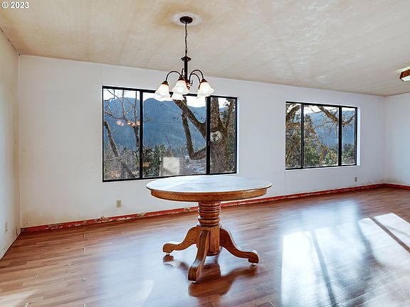 Nice home on a corner lot with views! Close to downtown Oakridge, but private quiet street. Main Level has certified wood stove in the living room. Extra family room with views. Main level bedroom suite with step-in shower. Two secondary bedrooms and bath on the main level. Downstairs family room has wood burning fireplace. Laundry and half bath downstairs. Upper deck off of the living room and back deck off of the dining/kitchen area. Spacious two-car garage. Storage shed out back.