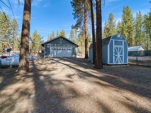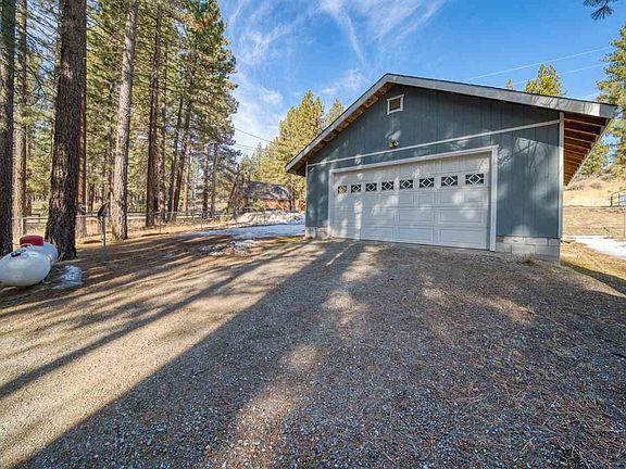 SPECIAL FULLY FENCED PROPERTY ON .35 ACRES. Well cared for manufactured home comes FULLY FURNISHED AND MOVE IN READY! This property is located across the highway from the Feather River and Portola River Walk with views of Beckwourth Peak. The large detached 2 car garage contains an attic with ample storage space. There is also a large storage shed near the garage. NEW CARPET in the interior of home which includes two bedrooms, a master bath with garden tub and separate shower, a large walk in closet, a second bath and plenty of windows throughout. Two heat sources including propane forced air and a Monitor Oil Stove. Covered porch to the front door was recently rebuilt. Property is on Portola City water and a septic system. Warm, cozy, sunny and bright, and ideal for either full-time living or a vacation get-away home. Limited time for showings as owner will be reviewing all offers on Saturday, March 20th; please call for showing as soon as possible.