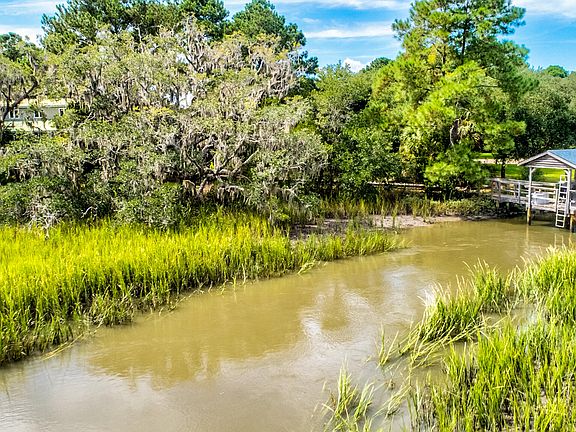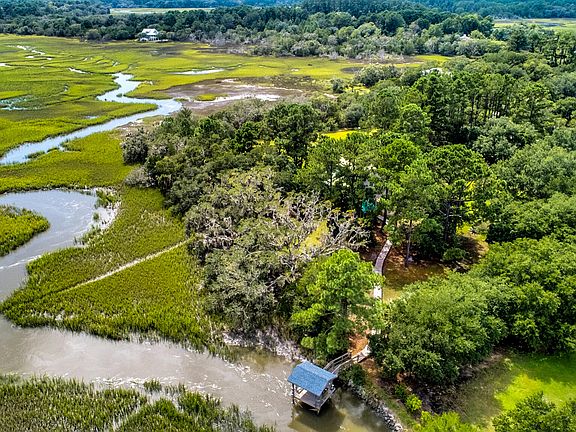 7649 Blue House Ln is located in the gated community of The Islands at Blue House. This quiet serene island community is exquisite w/ ever changing views of wildlife, located on Steamboat Creek & a short distance to the North Edisto River. This classic lowcountry home is custom built and nestled with beautiful live oak trees. It sits on 2.3 acres w/ tidal creek, wooden walking path that leads to the short covered dock. Owner access to the neighborhood deep water dock & boat ramp across the street from property. The home offers beautiful quartz countertops, 10 ft high beamed ceilings, built in bookcase w/ sliding ladder, elevator, an RO water system (reverse osmosis), lovely screened in porch, metal roof, 2x4 pine floors upstairs, and tankless water heater. Home sold Furnished!! w/ water, electricity, lights & fish cleaning table. Also has a removable rail on the front of the dock which is great for shrimping & boat entry. There is an outside shower under the home w/ sink & hot & cold water. Owner access to the neighborhood deep water dock & boat ramp across the street from property. ** HOA does not allow SHORT TERM RENTALS****