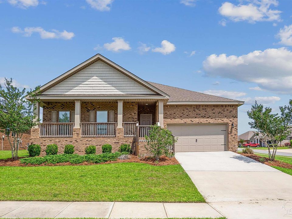 Welcome home to the Victoria, a 4 bedroom, 2 1/2 bath home nestled within the picturesque and gated community of Antietam. Inside this solid brick home, you are greeted with a wide foyer offering ample decorating space and reception room. Further in, a spacious great room sets the stage for everyday moments and special occasions. Large windows beckon natural light and offer enchanting views of the surrounding landscape, while seamlessly connecting the interior with the outdoors. The heart of the home lies in the open-concept design of the great room, kitchen, and dining area, providing the perfect setting for gatherings and entertaining. Prepare culinary delights in the well-arranged kitchen, complete with modern appliances and ample counter space. Retreat to the secluded primary bedroom with generous space for personalization. Indulge in the luxurious en-suite bath, featuring an easy access tile shower, garden tub, double vanity, and a spacious walk-in closet, offering both convenience and comfort. Beyond the primary suite, three additional bedrooms and a second bath with double vanities await. The separate layout provides privacy and tranquility for family members or guests. Conveniently close, the dedicated laundry room adds to the functionality of everyday living. Experience the epitome of classy Florida living within the Antietam community, offering a gated entrance, community pool, putting green, and HOA services that include yard maintenance with grass cutting, edging, and bi-annual fertilization. Come make this Florida house your home!