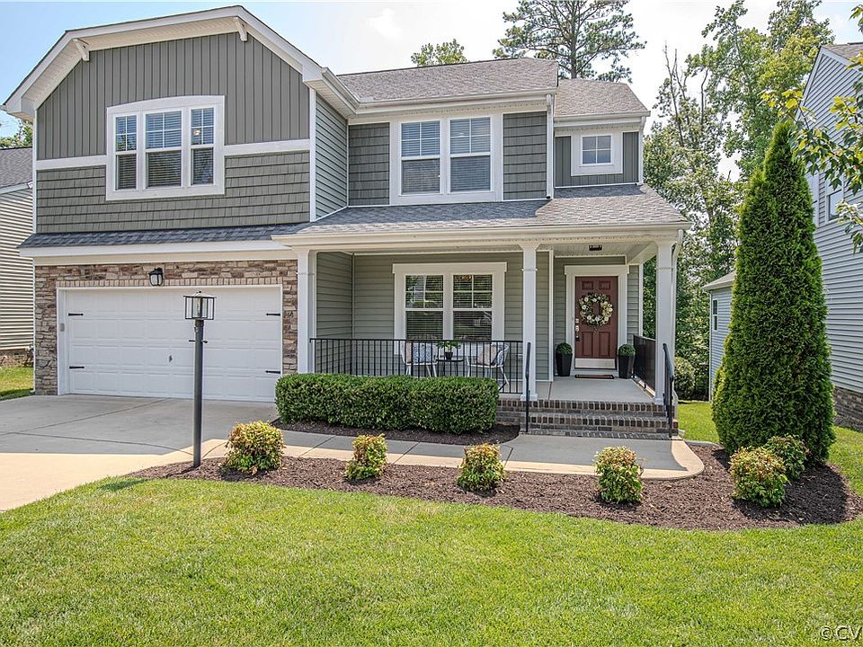 Beautiful home backing to the 18th fairway in Magnolia Green, perfect for new owners! No neighbors behind this home! Situated on a cul-de-sac street, this craftsman-style residence features open concept living with hardwood floors on the main level and new LVP flooring upstairs. The first level offers a versatile space for an office or bedroom, while an upstairs loft provides an additional gathering area. The family room boasts a stunning stacked stone gas fireplace, while the kitchen includes ample cabinetry, a walk-in pantry, and a drop-zone leading to the 2-car garage. Garage opener is on Wi-Fi so owners can operate from anywhere. Nest Thermostat downstairs. Full property irrigation system and lawn has been professionally treated since built. The private owner’s suite features two walk-in closets and a spacious en-suite bathroom, along with three additional bedrooms and a laundry room on the second level. Enjoy the outdoors from the front porch or the newly stained rear deck. Experience the Magnolia Green lifestyle with access to multiple pools, a tennis center, a championship golf course, miles of paved walkways, playgrounds, sports courts for basketball, pickleball, and volleyball, a year-round activities calendar, and the Magnolia Green farmer's market. Home is within walking distance to resort like pool - perfect for summer! Conveniently located near top rated schools, shopping, and restaurants. Move-in ready and available for quick close - no seller rent back needed. Make this house your next home!