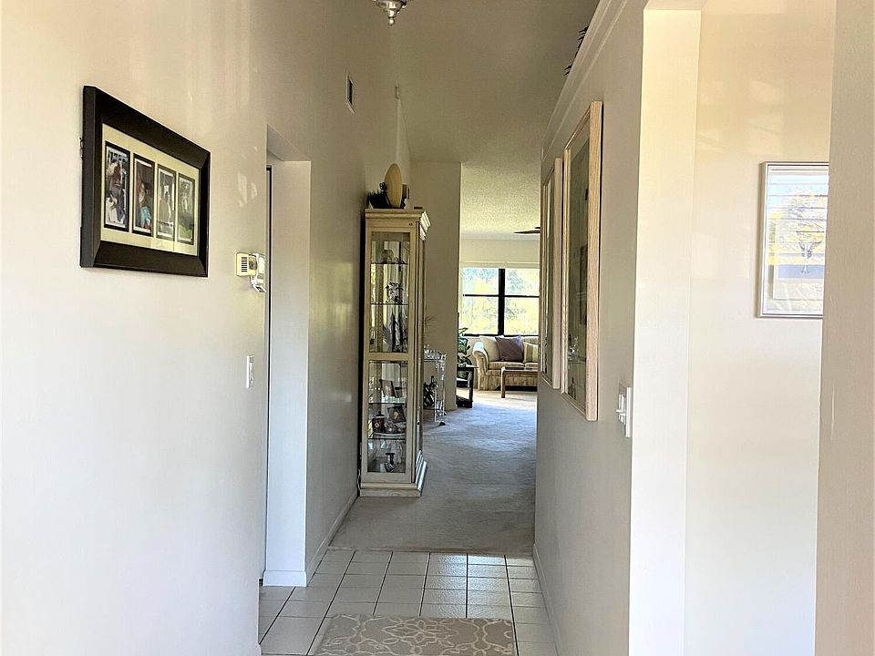 Location Location Location. BEAUTIFUL WATER AND GOLF COURSE VIEW from Master bedroom and Den. Large 2nd floor condo with VAULTED CEILINGS, EAT IN KITCHEN, lots of kitchen cabinets including FOOD PANTRY. A/C 2018, and NEW HOT WATER TANK. Large Master bedroom features en suite bathroom with separate vanity area and walk in shower. Extremely spacious walk in closet. split bedroom floor plan allows privacy for your guests. Guest bedroom is light and bright with 2 corner windows. 2nd bathroom has tub/shower combo. Laundry is located within the condo in a utility closet for more storage. Screened balcony also has full wall length utility closet and roll down shutters for storm protection. Parking is located right in front of stairway. Many guest spots close by. Satellite heated pool hot tub and clubhouse are just a few steps away. . Community is active and offers 2 heated swimming pools, hot tub, whirl pool, 2 exercise rooms, library, tennis, theatre/ball room, lobby, billiards and planned activities. Come join the fun in the sun in this well maintained property with the beautiful view!!!