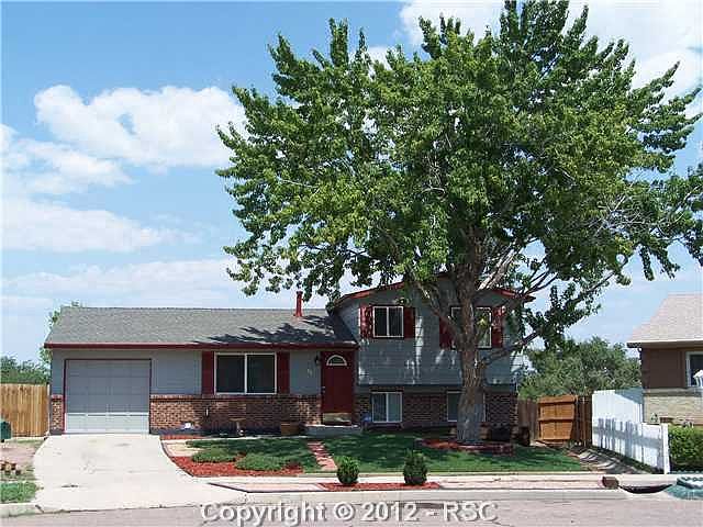 This lovely home is located on a quiet cul-de-sac on a huge lot that backs to open space. The interior has been redone, exterior has just been redone with new roof and windows, front yard is landscaped and gorgeous. 3 bedrooms, 2 baths, lower level living areas, large dinning with hard wood floors and a beautiful Kitchen complete this family home. Great location for Ft. Carson!