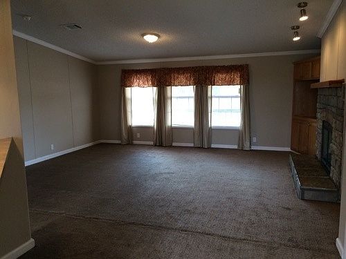 New paint, new carpet, brick foundation, fireplace, large kitchen, large deck, ready to move in