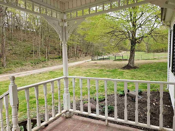 Home remodeled in 2004 with new plumbing, wiring, septic, windows, crown molding. HVAC is 2 1/2 years old. 3 BR, 2 BA, bonus room, gorgeous hardwood flooring, 10' ceilings, 2 gas fireplaces, pretty oak cabinets, lots of storage, mud room with 2 entrances. Partial fencing. Large field to the right of home connects to the corp line- is in the flood zone. Cannot build there. Property line goes to creek center. Price includes property from R side of driveway, storage shed & all land to the L.