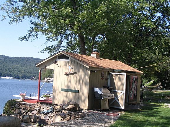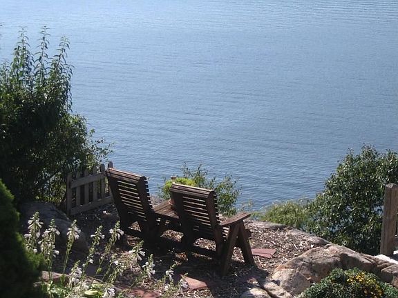 VIEWS!!! 100' LAKEFRONT!! SUNSETS!!EVERY DETAIL ATTENDED TO FROM TOP TO BOTTOM!. OVERSIZED 2 CAR GAR., 12 X 18 MOTORCYCLE GAR, ARTISTS STUDIO, LAKE EDGE CABANA, PATIO'S ,DECKS & MOREA LOT OF STAIRS TO THE LAKE, ONLY A FEW TO HOUSE. GARAGE OR MOTORCYLE SHED. LOTS OF PARKING-BLACK TOP. OVERSIZED 2 CAR GAR W HEAT, INSULATED ROOF, 200 AMP ELECTRIC & LITTLE DECK, 12 X 18 SHED-DOUBLE FLOOR JOISTS. 2 BR W VIEWS! NICE KITCHEN, LR W/CATHL CEILING, GAS FPLC, LOFT BR'S, DEN. 22 X 15 ARTIST STUDIO & VIEWS, SKYLIGHTS, LOFT, INTERIOR NEEDS FINISHING. LAKE LEVEL IS BEAUTIFULLY MANICURED. LAKESIDE CABANA IS 12 X 28 WITH PORCH & DIVING BOARD, DOUBLE FLOOR JOISTS, INSULATED ROOF W/ VENTS. DOCK. PATIO, 100' OF LAKEFRONT. SEE SURVEY. VEHICLE ACCESS TO LAKEFRONT AT END OF STORM ISLAND RD.