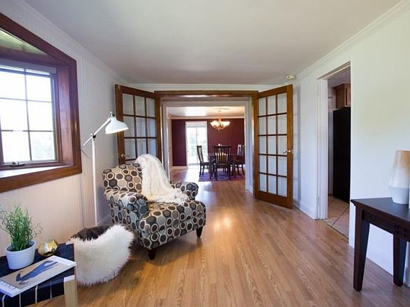 This home is MUCH bigger than it seems from the front. SECURITY SYSTEM, privacy abounds, lots of outdoor space. Updates throughout, level yard, wet bar, huge patio and deck, entertainers dream, finished basement, ceiling fans, move in ready!! home warranty included, in law apartment like with the main floor bedroom. fresh and clean. owner is licensed real estate agent...FRESH PAINT!!!