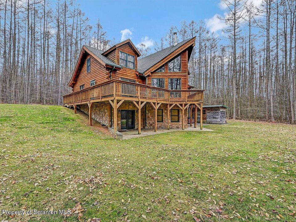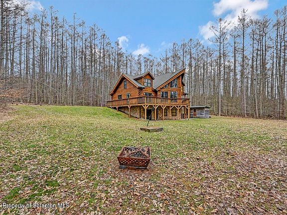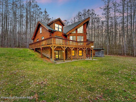 If you are looking for a spectacular vacation home or your forever home, and have your heart set on a log home, don't miss out on this. On a private 6.2 acre parcel, this home has it all. This one of a kind home has 4 bedrooms, 3.5 bathrooms, and a lovely open floor plan with large windows looking out at the woods. Lovely eat in kitchen with all new appliances. Finished basement with bedroom, bathroom and large recreation room. Walk out basement patio doors lead to a lower patio and hot tub. Storage building for lawn equipment. In the winter you can see the lights of Elk Mt., and in the summer enjoy the large deck for entertaining. Enjoy the lovely photos of this house and schedule your appointment soon.
