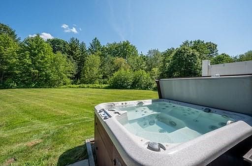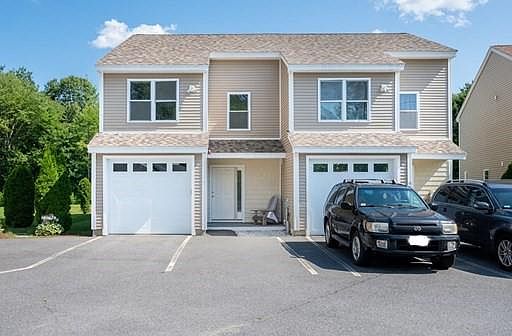 New offering in the River View Meadows Condominiums, which is surrounded by acres of wooded privacy! This 10 unit complex features townhouse style duplexes. This 6 year young, well-maintained, END UNIT features a completely OPEN CONCEPT, sun drenched main living area with engineered hardwood flooring & sliders to exclusive private outdoor patio that includes a hot tub. Half bath with laundry hookups conveniently in the unit. Upstairs is carpeted with a spacious & bright master bedroom featuring walk in closet & private master bath. There are 2 more generous bedrooms upstairs as well. Ceramic tile in baths. 1 car garage with storage space, PLUS 2 paved parking spaces directly in front of the unit. Super efficient Mitsubishi heat pumps will cut energy bills year round! Combine this with easy access to highways to commute, a low condo fee, and a well owner managed association with reserves, make this a home that won't last. Offer deadline of Sunday Aug 1 at 5pm.