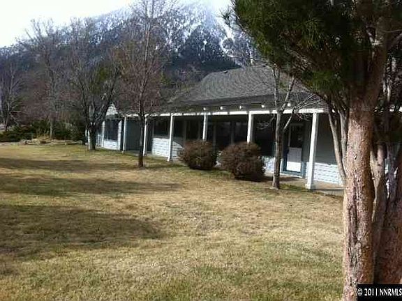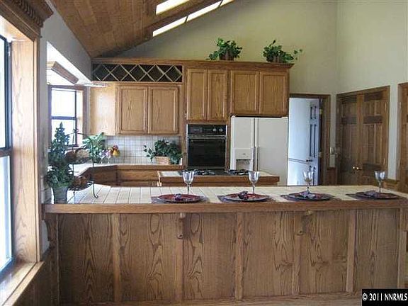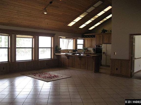 Large family home in the foothills that is priced to sell and freshly painted!!! Views of the Carson Valley and Job's Peak. Enter the massive great room with vaulted pine ceilings, brick hearth, built-in entertainment center with custom crown moldings. Off the great room are 2 bedrooms with bay windows and hardwood floors. A fully tiled bathroom separates the two bedrooms. Encompassed in the great room is a huge kitchen with tile floors and counters, pantry, island cook top, On the main level is the