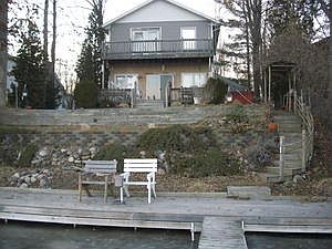 Lakeside Paradise! Year round enjoyment! All sports “Barnes Lake” is stocked with Walleye, Sun, Red Eye & more! Bring the fishing poles, water skis, sunscreen and iced tea! This home boasts of its own private dock, picturesque curving staircase from the home to the lake & large deck for you to relax on and watch the boats go buy. Once inside you’ll be completely charmed! Over sized living room , even larger main floor family room for entertaining, custom built kitchen with snack bar, an abundance of cabinets for storage, all appliances, formal dining area, a multitude of windows with breath taking views of the lake and a sliding door to your secluded decking. You’ll be delighted to find a handy main floor laundry, gleaming easy care wood flooring, master bed room with sliding door to the raised deck for relaxing moon lit evenings and impressive entryway where you will gladly usher your guests into your dreamy home. This home has been well cared for and is ready for you to move right in and enjoy the “Good Life”! Call us now and make it yours today! Lv 18x21, Fm 24x15, Kit 17x14, Bd1 13x12, Bd2 11x11, Bd3 11x11 Taxes W$1094 S$641 Home warranty!