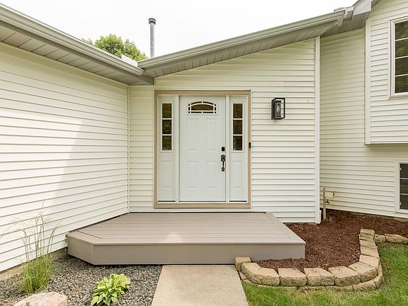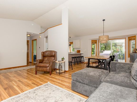 Wonderful 4 bedroom, 2 bath home with 3 car garage! New composite deck, fenced in backyard with mature trees, open feel with vaulted ceilings, walk-in closets in all bedrooms, nice sized living & family rooms, primary bedroom, walk through primary bathroom, heated floors in entry way and quick drive to 169. Ready to move in and enjoy!