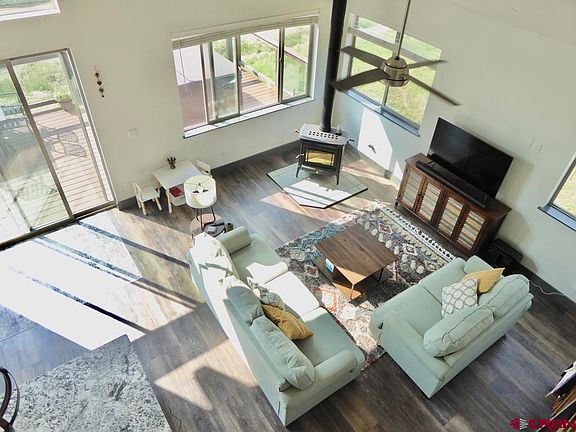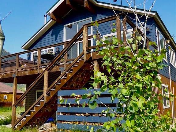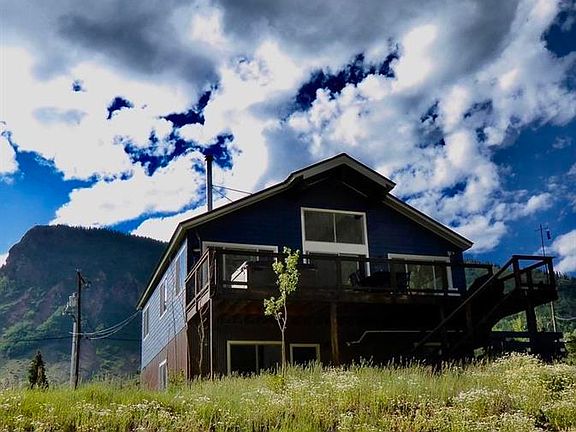 This beautiful custom-built home offers luxurious mountain living in Silverton's sunny south side. Situated on a quiet corner lot, this home features a brilliant floor plan with the spacious open living upstairs, captivating the picturesque mountain views in every direction. You will appreciate the vast open living space and huge 400 square foot deck allowing indoor/outdoor living, ample room for entertaining, and a hot tub for viewing Silverton's dark-sky star-scape. The living area features vaulted ceilings, a gourmet kitchen with an enormous central island, leathered granite counters, a butler's pantry, a cozy wood stove, and incredible natural light. The master suite has a large walk-in closet and spacious ensuite with a custom live edge vanity and large soaking tub. The upper loft offers bonus space perfect for a home office. The heated garage is nearly 1000 square feet and has plenty of room for your vehicles, toys, and personal storage. Don't miss the opportunity to experience small town mountain living in this luxurious newer built Silverton home.