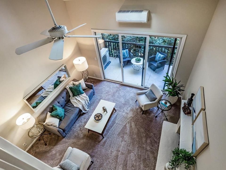 Private electric car charger in the detached garage with shared space. One open space permitted parking AC throughout the unit, Renovated in 2021with new paint, new carpet and new Pergo floor, new counter top, new bathroom vanity top, new faucet, and new new Bosch dishwasher In unit washer and dryer, Sky light with remote control for brightness and convenience. High ceiling, Super large space for 2 bedroom unit with balcony, Beautiful community landscaping Community pool. Next to a park. Steps away from Safeway, minutes away to San Antonio dining center, movie theatre, bank and shopping center, Dedicated biking trail to Google. No smoking, no pet, 2nd bedroom is a loft on 2nd level furniture in the pictures are NOT included.