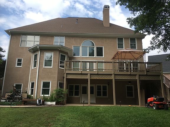 SOLD "Hard-coat" Stucco, 5BR, 5BA on level Cul-de-sac, with level driveway/ 3 car garage (one higher for boat, etc), and level large backyard comes with riding lawnmower (pool?) Open Floor Plan. Hardwood Flrs on Main Level, 2-Story Foyer , Dining Room, Large Kit with breakfast nook , 2-Story Fam Rm w/FP & Built-in Cabinets, Bedroom on Main w/full Bath. Upper Level Master bd with sitting area, jacuzzi tub and large shower, Guest BR w/Private Bath, Two Add'l BR's w/Jack n Jill BA. Finish Terr Level , Workout Rm, BR, Full BA. Finished daylight basement opens to covered (dry-below) patio. Great Entertaining Deck (freshly refinished) overlooks Priv Lg, Flat Bckyrd. 3-Car Side-Entry Garage with level driveway on flat dead end cul de sac. Active Swim/Tennis Neighborhood.