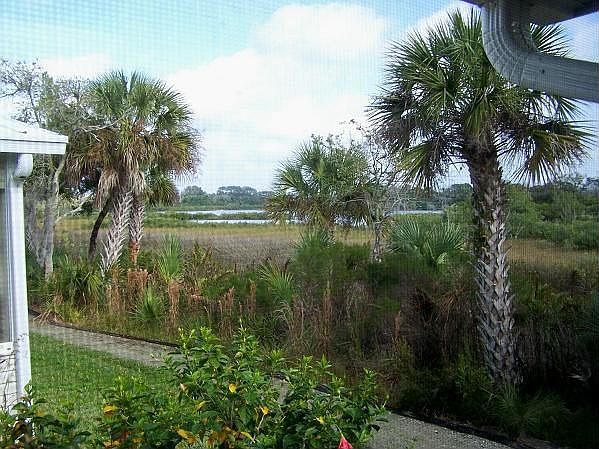 RIVERFRONT TRIPLEWIDE (2098 sq. ft.) with Indian river and estuary views. Watch the sunrise come up over the Indian River from your screened porch and drinking your morning coffee. Gourmet large center island kitchen. Corian countertops and new sink. Loads of cabinets and a huge pantry. Eat-in kitchen. Living area is open to formal dining room. Family room with wood burning fireplace and bookcases. Master bedroom has HUGE closet. Guest bedroom has mirrored large closet. Master bath has a jetted tub plus a shower. BONUS ROOM: This room could be a third bedroom if there was a closet. There is a window. OR used as an office or craft room. Home is in mint condition and handicap equipped throughout the home. Roof over the home 1/2017, shed roof 2/09, A/C 10/16, termite bond. Large double carport - covered for 2 cars and room for at least 2 more cars. Close to shopping, schools and minutes from the beach. Enjoy all the amenities - fitness center, heated pool, screened hot tub, intracoastal boat & kayat ramp (short walking distance), elegant clubhouse with loads of activities & a dance floor, tennis, pickleball, bocci, shuffleboard, horseshoes, pool tables, ceramics w/kiln, intracoastal fishing pier w/cleaning station. Low quarterly dues include cable, internet, outside storage for 1 toy (either an RV or boat) when available. Own your land. Enjoy Resort Living Every Day!