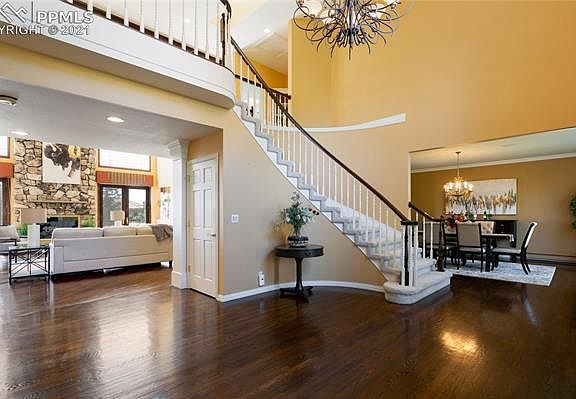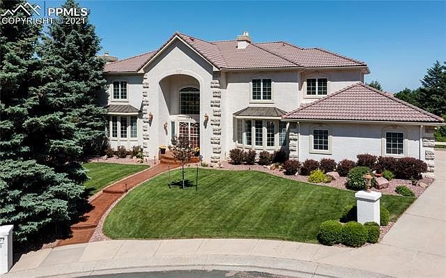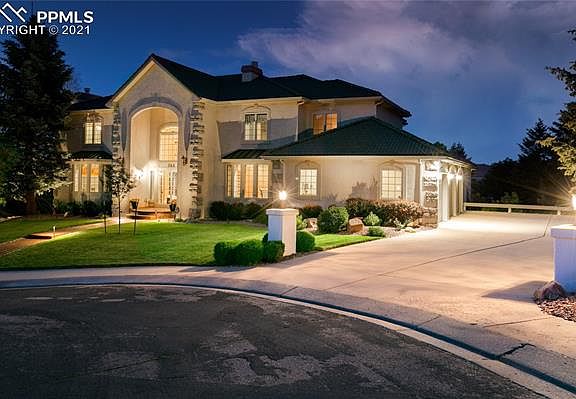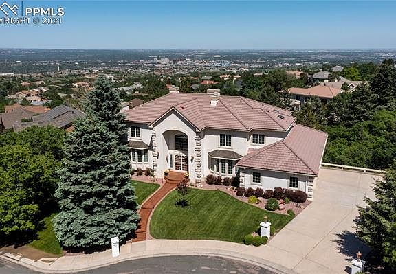 Exceptional custom-built 2-story home in prestigious Top of Skyway. Half acre cul-de-sac lot w/fabulous city & mtn views. Handsome wood floors through much of the ML. Dramatic foyer w/soaring ceilings, contemporary chandelier, & grand staircase to UL. Formal LR w/large view window, crown molding, built-in speakers, & gas-log FP w/marbled tile surround & mantel. French doors lead into a ML Office w/newer carpet & built-ins. Tiled powder bath off Office. Formal DR w/bay window, chandelier, & Kitchen access. The Great Rm has a beamed ceiling, view windows, a floor-to-ceiling gas-log FP w/rock surround, built-ins, & wet bar. Walk-out to an expansive deck w/amazing city/mtn views. Large Nook off Kitchen w/breakfast bar. Gourmet island Kitchen w/pantry, planning desk, soft-close cabinets w/pull out drawers & granite tile counters. SS appl incl a Viking 6-burner gas cooktop, built-in oven, microwave, dishwasher, & French door refrigerator. Laundry Rm w/tons of cabinets, built-in ironing board, sink, & freezer that stays. Spacious ML BR w/three quarter ensuite bath. The UL hosts a 2nd Laundry Rm & laundry chute, 4BRs/3Baths. Double doors lead into the MBR w/double mirrored closets, a gas log FP, private balcony to enjoy amazing views, & 5pc Bathroom. The MBath has a dual sink vanity, jetted tub, tiled shower & cedar-lined walk-in closet. 2 UL BRs share a full Bathroom. UL BR#4 has a lighted CF & ensuite shower bathroom. The LL incl a 2nd LR, a FR w/gas-log FP, built-ins, & a large walk-out Rec Rm w/wet bar that incl a dishwasher, bar fridge, & microwave. There is a Tuscan wine cellar w/cabinets & built-in wine rack, a Craft Rm & Storage Rm w/adjoining shower Bathroom. Amenities incl central vac, a sec sys, whole house fan, in-floor & baseboard heat, radon sys, 2 water htrs & air conditioners, & private courtyard wired for a hot tub. Fin 3-car garage w/newly painted floors & storage. Close to D12 schools, parks, & trails. Easy access to I-25, Hwy 24, OCC & downtown Col Spgs.