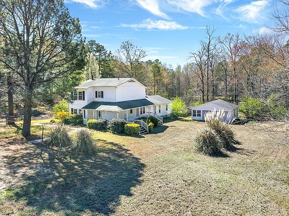 Welcome to your homestead in a quiet country setting w/ a large pond. Very spacious home with 4 bedrooms, 2 full bathrooms, & a laundry room. Character filled w/ stone accent walls, a bay window, & a wood burning stove in the den with a separate dining/office area. Step down to a great room alongside a rec room & the main level bedroom. Head out of the back or side door to a large decking system leading you to an above-ground pool. Sit on the back deck & enjoy the tranquility of country living while you watch the wildlife around you including deer & mallard ducks swimming in the peaceful pond which is stocked with bass, crappy, brim, and gar for great fishing. Detached garage w/ a wood burning stove is perfect for your workshop or to store your toys. This 5.6 ac parcel is mostly fenced in & is adjacent to another 3.57 ac lot being sold by the same seller. Lots of space with tons of potential for you to come in, give it some TLC, & make it your own. Property is being sold as-is.