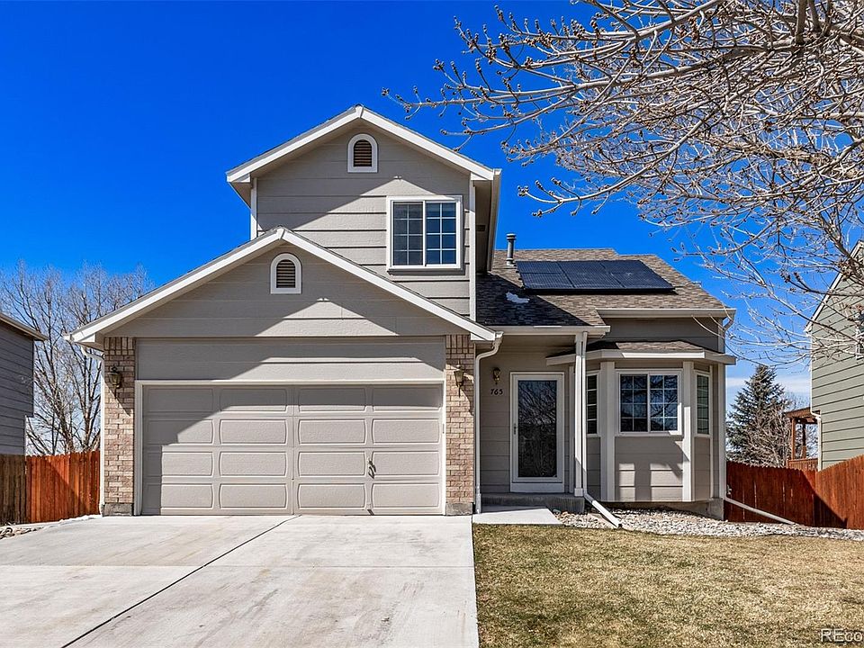 PROFESSIONAL PICTURES COMING SOON! Energy-efficient home that with not only owned solar panels for you to have lower electric bills, but it also has tons of upgrades & mountain views! Prestigious cul-de-sac location just minutes to downtown Castle Rock, great restaurants, the Outlet Stores, Phillip S. Miller-MAC, a 300-acre park with outdoor amphitheater, mini-incline, playground, and many trails for hiking. Freshly painted inside and out! The interior offers new flooring on the main and upper levels, new lighting, updated bathrooms, newer windows (2016), storm doors, and new blinds throughout. Bay window and fireplace in the living room! The beautiful kitchen has newer appliances (2021), a center island w/breakfast bar, ample cabinet/counter space, and a brand-new exterior door to the deck. Fall in love with the spacious basement, boasting a laundry closet, linen closet, plush carpet, and walkout access to the backyard. The huge backyard features a newly painted deck, stained fencing, and green grass. Don't miss out on the newer driveway and stoop. Easy access to I25 for your commute to Denver or Colorado Springs! Seize the opportunity!