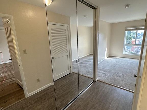 Upgraded 1bed/1bath unit in bustling Grand Lake neighborhood. Beautiful wood floors throughout entire unit; sizable coat closet next to front door; open concept into the walk through kitchen; includes stainless steel appliances; refrigerator, electric top stove/oven; dishwasher. Comfortable eat in dining room with direct access to kitchen; new stainless steel ceiling fan & light.Large living room w/floor to ceiling sliding patio door to the private, sunny patio; central heating. Spacious bedroom w/ample walk in closet & secondary closet w/built in shelving; large window w/lots of natural light.Bedroom includes a vanity with under sink storage, medicine cabinet, toilet & bathtub. Security system monitored building, secured garage parking w/dedicated parking; secured washer/dryer unit on each floor; lobby area w/sitting area, elevator, telephone intercom for guest entry; common garden area w/sitting areas for tenant's use; on-site manager. Pictures may be of a similar unit. Owner pays for water, sewer, garbage & landscaping Tenant responsible for PG&E, telephone & cable. No smoking on premises. Non-refundable application fee of $35.00 due at application submission. Parking available. Pet OK w/management approval. 1-year lease.