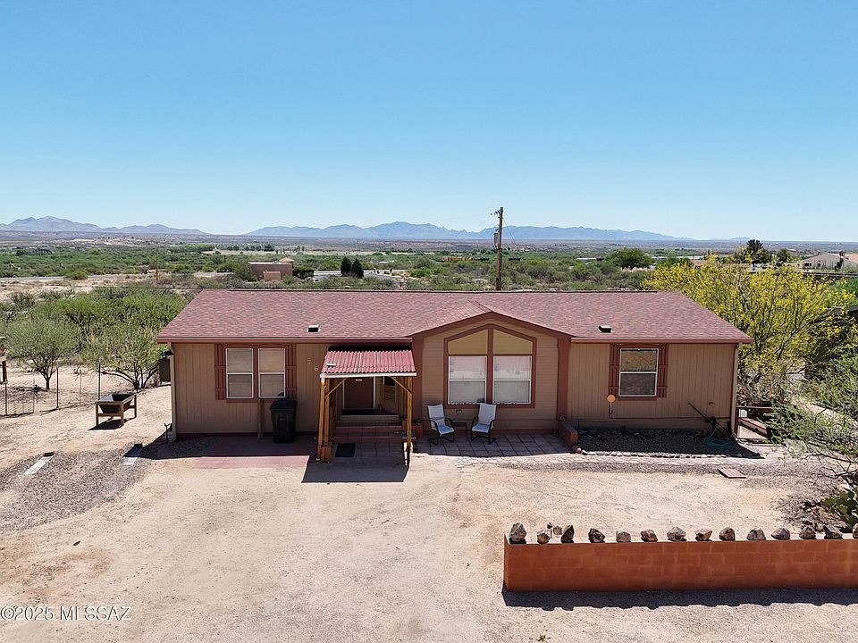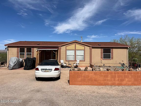 Nice 32 x 56 double wide manufactured home on lot with views of the San Pedro River Valley and the Dragoon Mountains. Home is a 3 bedroom 2 bath with a laundry room and breakfast bar. Kitchen features a desk for office space. Well maintained with a large composite rear deck and a fenced back yard. Must see to appreciate.