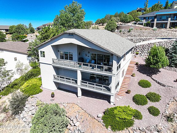 WOW! Spectacular ridge-line home in high demand YAVAPAI HILLS! Fabulous VIEWS, VIEWS, from every window in home. This lovely 2800+SF 4bd, 3ba home with 3 car garage and built-in cupboard/shelves. The light bright floor plan includes Kitchen w/GRANITE counters, Breakfast bar DR, LR, Gas FIREPLACE, Master Bdrm. with remodeled Bath, Guest Bdrm., guest bath, plus Laundry Rm...Live on One Level very comfortably! Lower Level is 2 Bdrm., Bath with Game-room, Bar with Cabinets (Pool Table can convey). Lower level could be converted to an InLaw Suite or Guest Qrtrs. inc. full deck too. Wood laminate, carpet & tile floors throughout. Nice high ceilings W/fans. Newer Roof 2021, plus 4yr Fridge. 2 newer up and low Trex decks offer Panoramic Views! Huge 2nd level Storage/maintenance Rm With 50G WH,