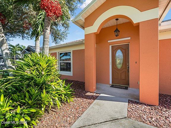 This beautiful 4-bedroom, 2-bathroom home in West Melbourne, Florida was built in 2003 and has been meticulously maintained. It features a spacious layout with plenty of room for everyone to enjoy. The open living area flows seamlessly into a separate dining space, creating a great space for entertaining. Natural light fills the home, creating a warm and inviting atmosphere. With a brand new roof, you can have peace of mind knowing that the home is protected. Outside, you'll find a screened-in pool and patio area, perfect for relaxing and enjoying the Florida weather. The lush tropical garden with fruit trees adds a touch of paradise to the property. With its prime location, this home offers easy access to both Orlando and Cocoa Beach. You'll also appreciate the walkable neighborhood and low-cost HOA. Shopping, dining, schools, and a hospital are all conveniently located nearby.