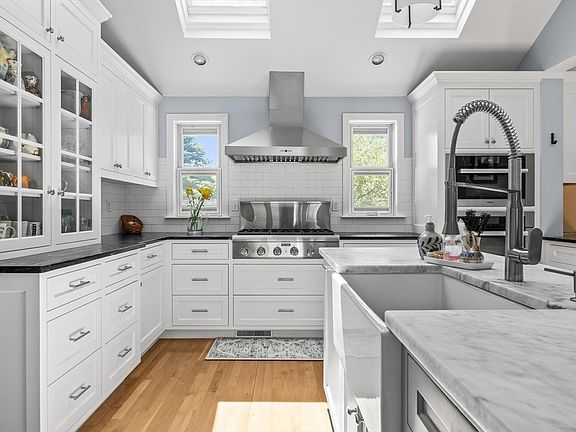 - Features: Skylight, Cathedral Ceiling(s), Beamed Ceilings, Closet, Closet/Cabinets - Custom Built, Flooring - Hardwood, Dining Area, Balcony / Deck, Pantry, Countertops - Stone/Granite/Solid, Countertops - Upgraded, Kitchen Island, Breakfast Bar / Nook, Open Floorplan, Remodeled, Wine Chiller, Gas Stove, Peninsula, Lighting - Pendant, Lighting - Overhead