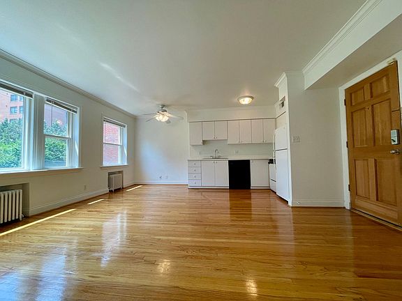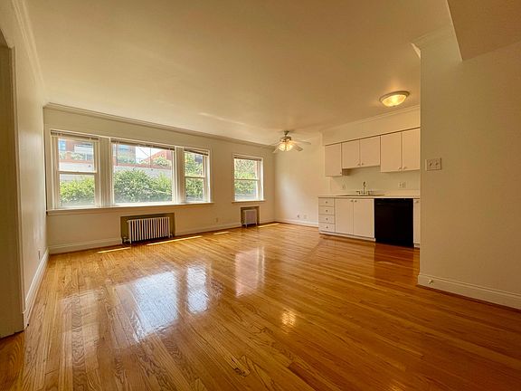 Located in The Moorlands, this smart studio apartment has all of the features one could want. Large living space, remodeled kitchen and breakfast-room. This apartment was renovated in 2003 and has been updated with the following improvements: new plumbing, new electric service, new thermal-pane windows, mini-blinds, central air, new kitchen cabinets and appliances, dishwasher, and disposal. Other features include: crown molding, ceiling fans, internet and cable ready, individual security systems, refinished hardwood floors, large closets, and more. Garage parking is subject to availability. One Year