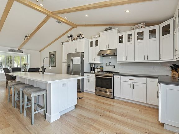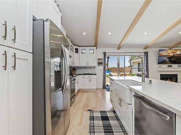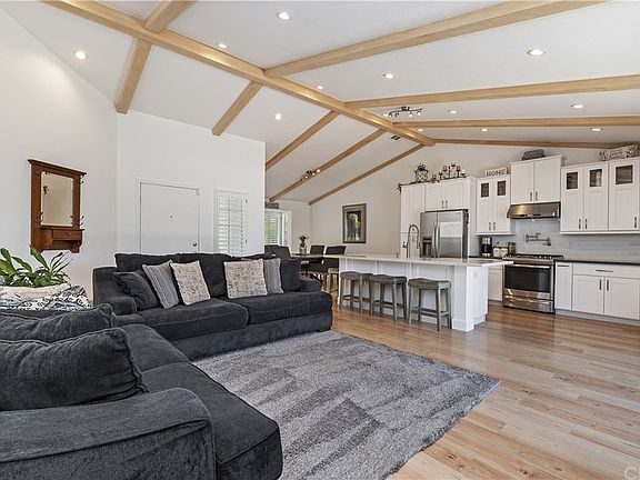Welcome Home~Single Story Corona Charmer conveniently located in a Cul De Sac! Check out the 3D Virtual Tour. This home BOASTS an Open Floor Plan and High Ceilings upon entry into the Great Room. You and your guests are immediately greeted with the Brand New Kitchen complete with a FarmHouse Sink, Stainless Steel Appliances, Extra Large Island, Custom Cabinetry, Soft Close Drawers and POT FILLER!! This is a DREAM KITCHEN designed by the homeowners with attention to detail and quality craftsmanship. Wood Beam Ceilings and Dimmable Recessed Lighting in the Great Room are sure to be a focal point and topic of discussion of your visitors. Both the Guest and Master Bathrooms have been renovated in popular colors and style. There is a convenient Indoor Laundry Room with Storage Cabinetry. The Master Bedroom has an AMAZING White Shiplap Ceiling accented by a Ceiling Fan giving this space more charm and style. The 4th Bedroom is located at the back of the house with Laminate Flooring, 2 Skylights, White Shiplap Ceiling, French Doors to the BackYard and is very spacious too. The Backyard has recently been renovated with a Brand New Fence around the entire perimeter of the property, New Sod, New Sprinkler System, Sand Box, Organic Garden Area, freshly trimmed palm trees and a beautiful view of City Lights at Night. There is plenty of room for a built in pool or anything else you can imagine in this LARGE space. Come see this home for yourself and FALL IN LOVE!