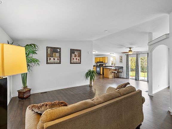 Nicely remodeled throughout, move in ready, nice floor plan, freshly painted inside and out, new wood floors and carpet, living room has wood floors and vaulted ceilings, kitchen w/eating bar, new refrigerator, nook area, dining room w/slider to new deck, vaulted family room or lg office has wood floors and slider to deck, master has lg soak tub and shower, utility room, covered front porch, 2 car attached garage.