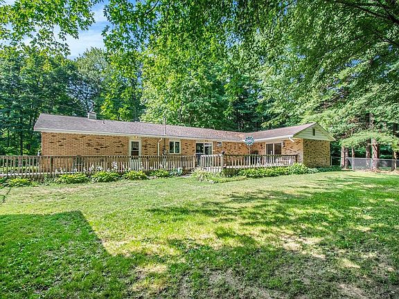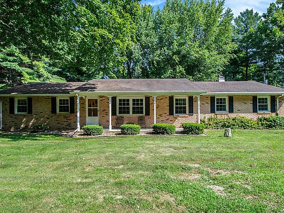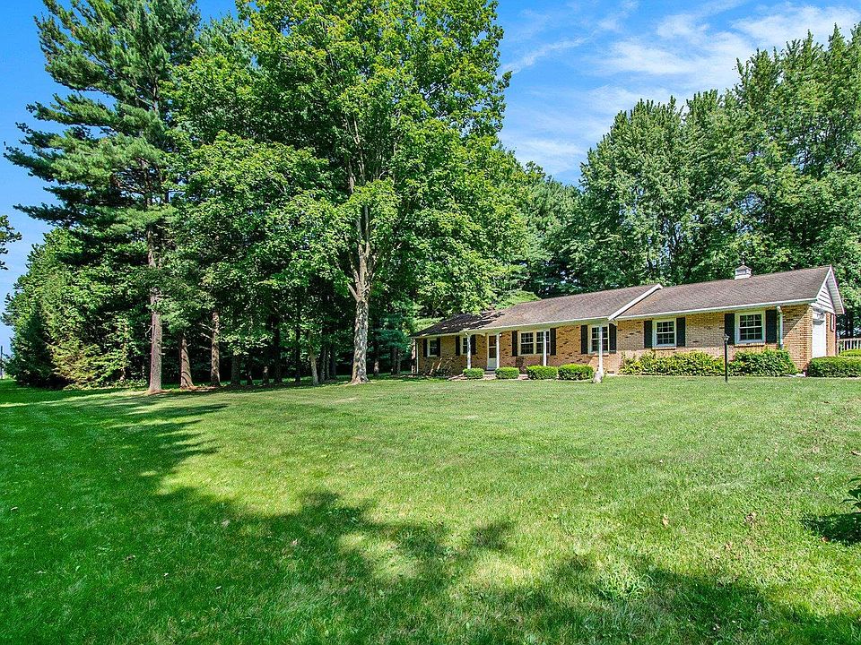 Could this be the country estate of your dreams? Stately solid brick ranch boasting multiple living spaces, intuitive flow floor plan, big back deck, partially fenced back yard & 7.5 acres offering prime wildlife viewing opportunities including deer & turkey! Conveniently located super close to Tippecanoe/Nappanee/Bremen/Bourbon as it’s right in the middle of all of these which means an easy drive wherever you want to go! Sure to charm from the moment you arrive, attractive exterior is neat & tidy with detailed landscaping, black shutters, covered front porch & asphalt driveway leading to attached 2 car garage & detached oversized 1 car garage/shed for yard tools & toys. Built in 1971, this 3 bedroom, 2.5 bath home has just under 2k sqft & has been well maintained from outside in. Front door opens to bright & welcoming atmosphere complemented by plenty of natural light & some retro throwback design elements, such as patterned wallpaper, groovy light fixtures & high quality craftsmanship. Inviting front living room has big picture windows & large open entryway linking the formal dining room—perfect for entertaining! Head on back to the kitchen with abundant cabinetry, double oven & wrap around breakfast bar great for quick bites. On the other side of the kitchen is the amazing family room with wood panel walls, sliding glass doors to walk-out deck & impressive all brick floor-to-ceiling corner fireplace to keep you cozy all winter long. Luxurious primary bedroom features double closets, its own set of private sliding glass doors to walk out deck & fantastic en suite bath with separate commode & tiled walk-in shower. Remaining 2 bedrooms are both comfortably sized (1 carpeted, 1 with wood flooring) with ample storage throughout. Main shared full bath with tub/shower combo also in bedroom hallway. Nice sized laundry room off garage access beside half bath & mudroom next to another door to back yard. Nice full basement for storage plus one enclosed room. Long back deck stretches almost entire length of home & is ideal for sun bathing, dining al fresco or kicking back with a cold drink at the end of a long day. Fenced area of yard will safely contain pets or littles. Lots of trees provide both shade & privacy as well as gorgeous backdrop & views. Serene peaceful setting will have you breathing easier in no time! Move right in & start making memories—this won't last long! Floor plan in the attached documents. Ref parcel across street: MLS #202532396.