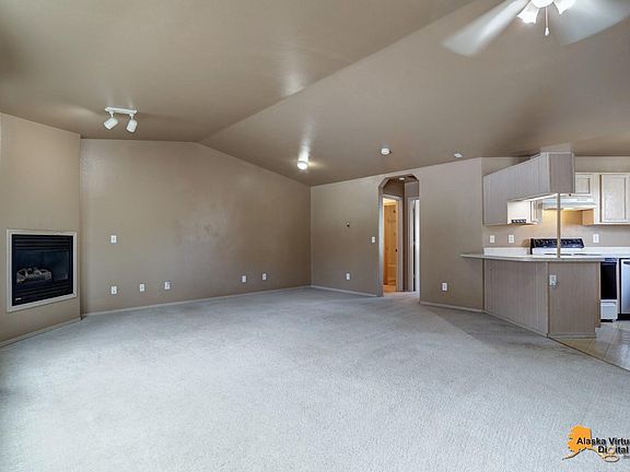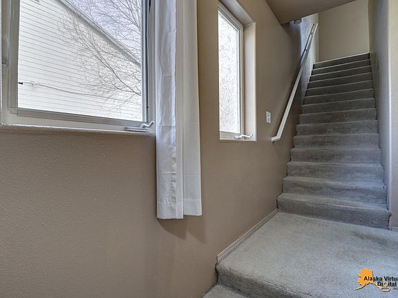 Large 3 bedroom 2 bathroom townhouse condo has been professionally cleaned to include carpets is ready for its new owner. Cathedral ceilings on top floor give a feeling of spaciousness. Master on top floor and two bedrooms on entry level. Gas fireplace in living room. Home has on demand water heater. Close to military bases and Glenn Hwy for quick commute north or south.