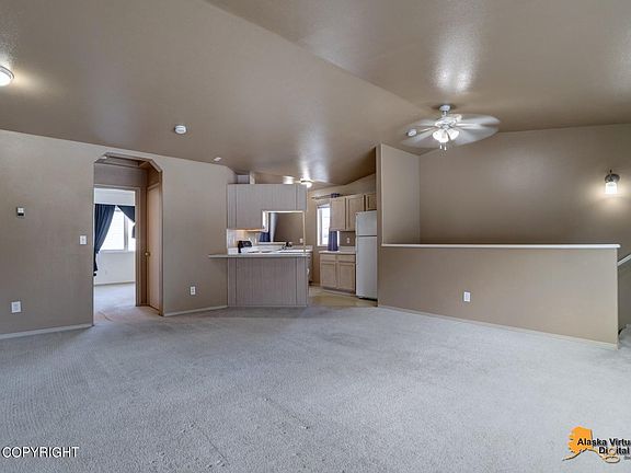 Large 3 bedroom 2 bathroom townhouse condo has been professionally cleaned to include carpets is ready for its new owner. Cathedral ceilings on top floor give a feeling of spaciousness. Master on top floor and two bedrooms on entry level. Gas fireplace in living room. Home has on demand water heater. Close to military bases and Glenn Hwy for quick commute north or south.